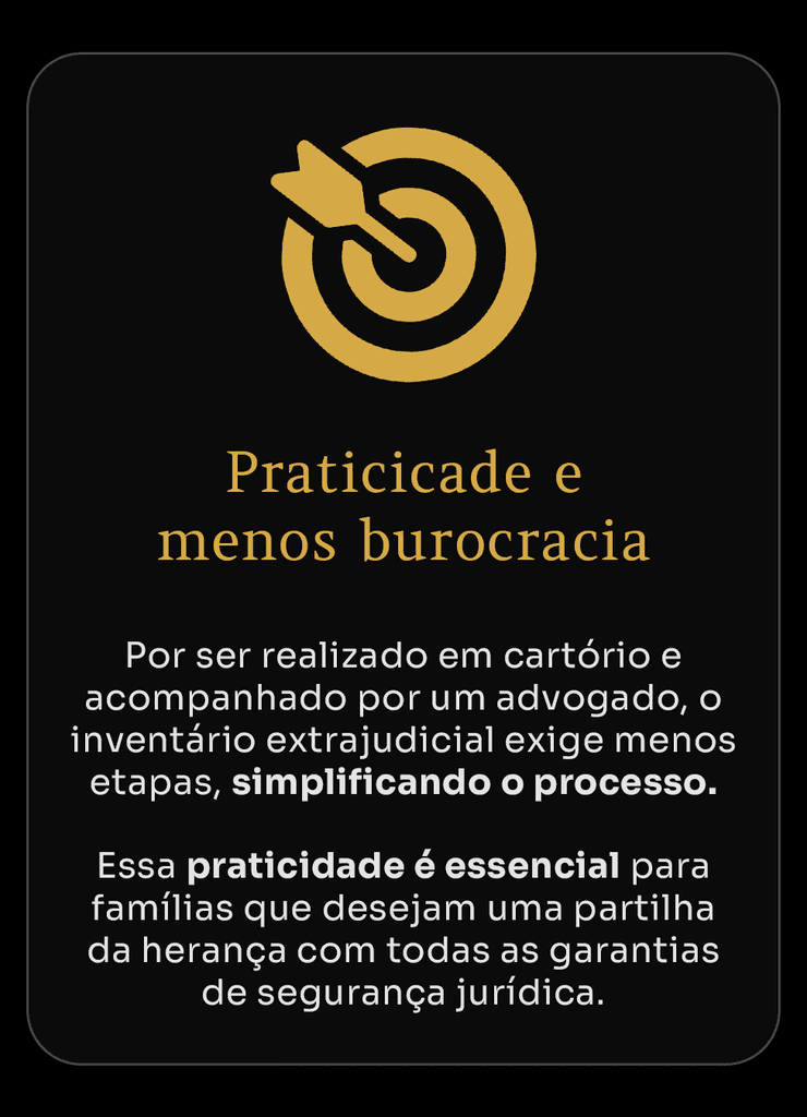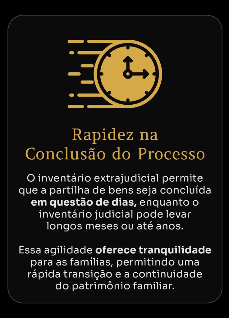 O inventário extrajudicial, assim, oferece uma solução rápida, econômica e descomplicada, assegurando que o patrimônio seja transferido com segurança e agilidade.